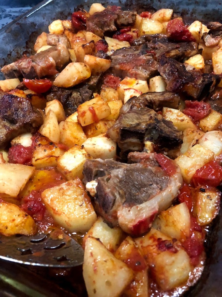 Just about every time I head away to the beach this is what I make! There is just something about a good old seasoned fan forced oven and local lamb…YUM! Be sure to get some good bread to serve with this as mopping up the sauces in the bottom of the pan is THE BEST PART!