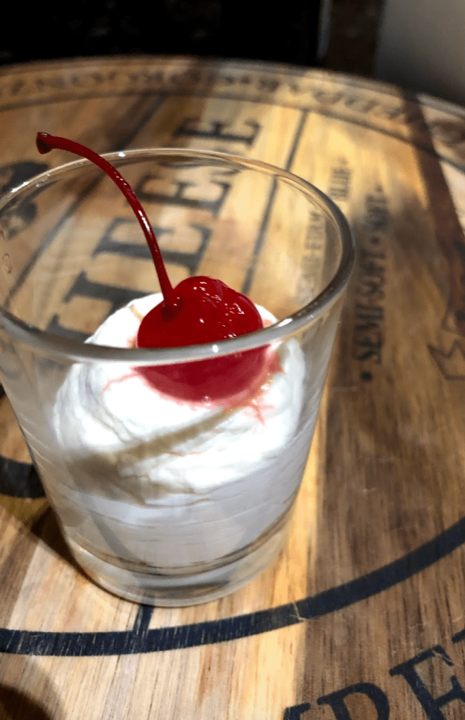 Place into small glasses and top with crushed amaretti biscuits and/or a cocktail cherry. They are sweet so you don’t need much in each serve!