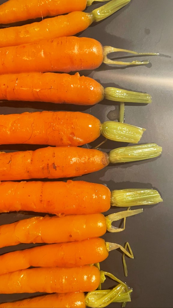 Add to the stock, reduce to a simmer and cook until the carrots are tender.