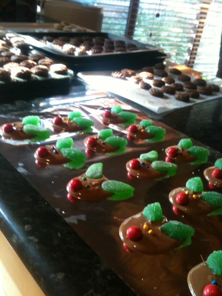 Lay out a sheet of aluminium foil and get your ears, eyes and noses all ready before melting the chocolate as you have to work fast so everything sticks!