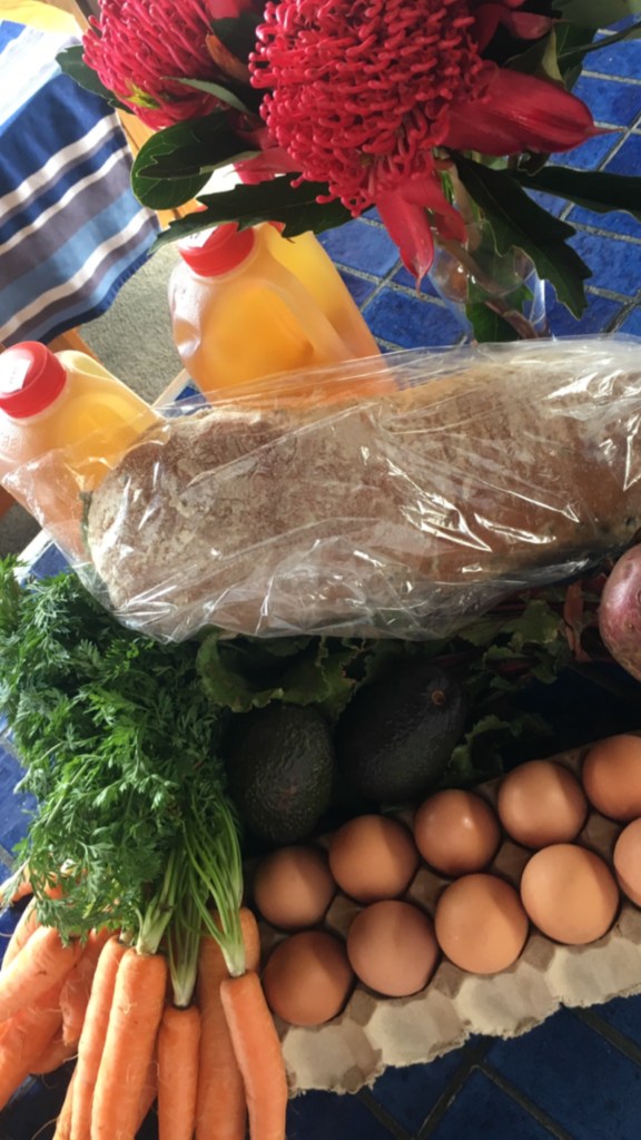 Dried pasta [rigatoni, spaghetti No7, as well as a few odd editions], extra virgin olive oil, canola oil, white vinegar, sea salt, balsamic vinegar, chicken stock powder, castor sugar, plain and self raising flour, dried chilli flakes, ground cinnamon, honey, rolled oats, brown onions, arborio rice, passata, canned corn, Serena tuna, dry origano, oyster sauce, sesame oil, soy sauce, ground coffee, tapioca flour & whole tinned tomatoes.
