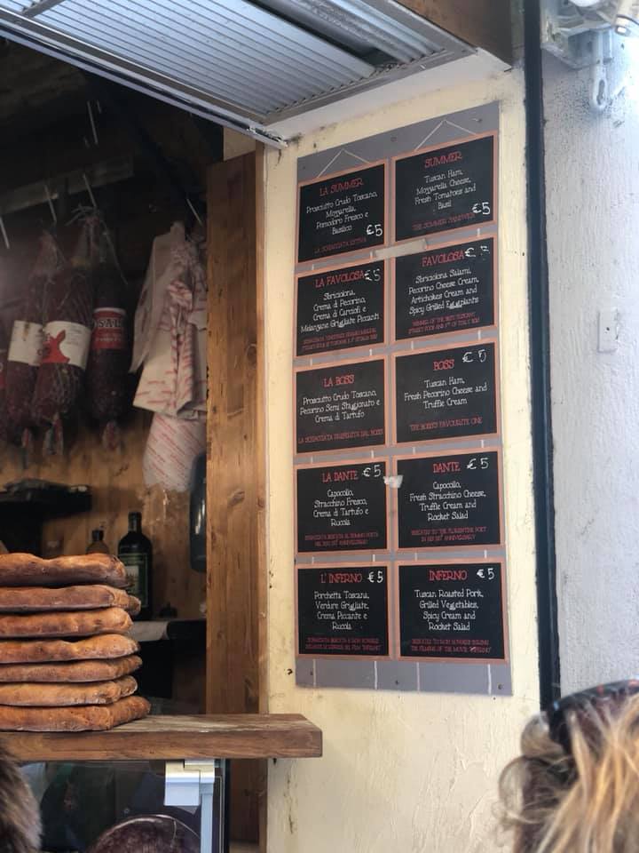 All’antico Vinaio: YOU CANNOT VISIT FLORENCE AND NOT EXPERIENCE THIS!!! Every single person I have sent here has stated that this is the best sandwich they’ve ever had in their lives! The most famous sandwich shop in Florence that can have up to an hour wait that’s well worth it. Fresh focaccia bread with fillings such as Sbricolona salami, pecorino cream cheese, artichoke cream, truffle cream, spiced grilled eggplants, Tuscan ham, stracchino cheese, rocket etc
