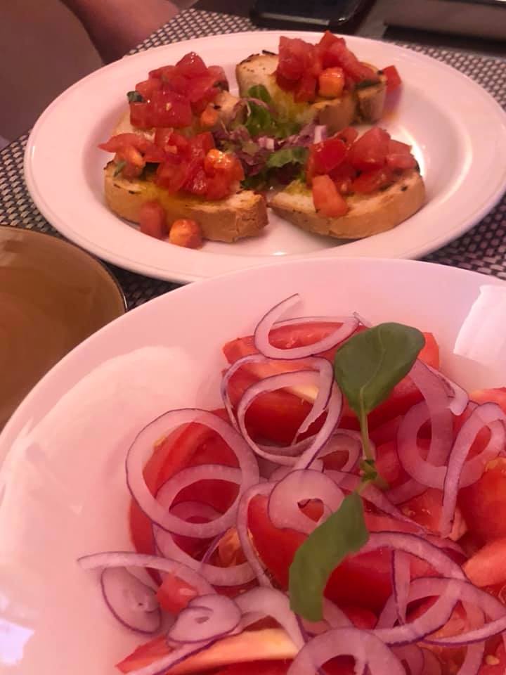 Trattoria Katti; A family owned restaurant with one of the most charming waiters ever! Started with a fresh tomato and onion salad covered in EVO. Spaghetti with cherry tomatoes and vongole as the main, lots of garlic and parsley made this delicious. To finish, a coffee affogato were the ice cream ball had been rolled in meringue, yumm
