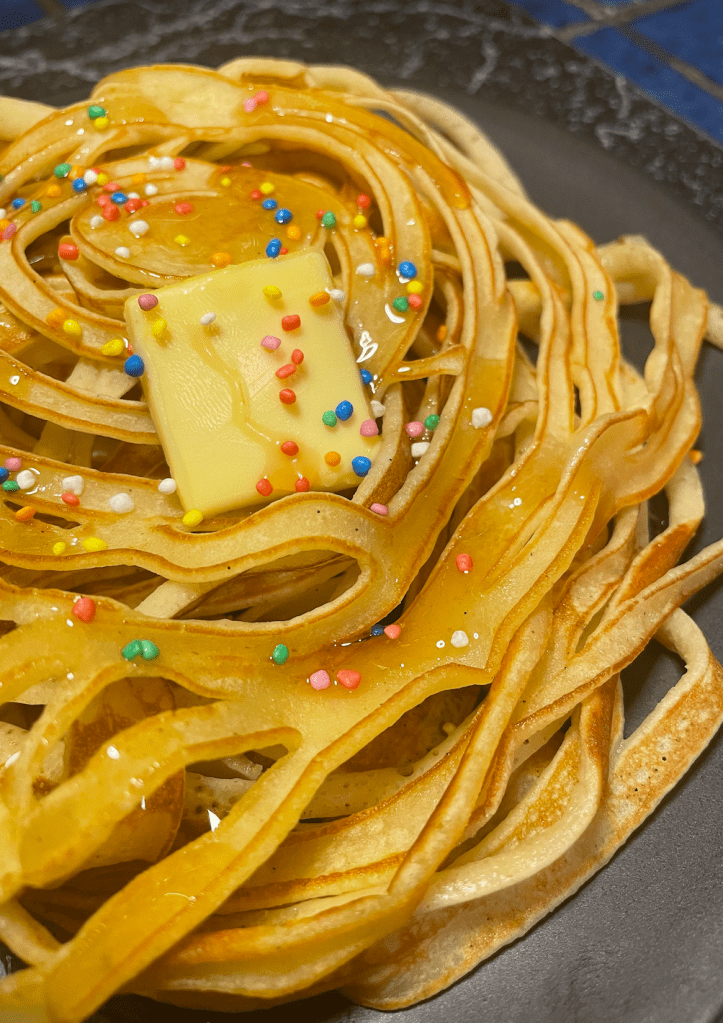 I couldn’t bring myself to put maple syrup on actual spaghetti so this is my alternate and a lot of fun!