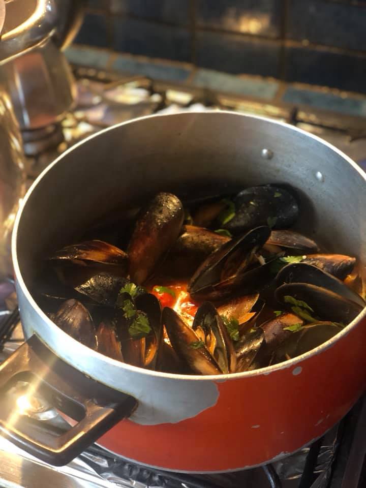 A cold winter night down the coast is absolutely a perfect match for this dish. There is nothing better than coming in out of the cold air and diving into a hot bowl of mussels, soaking up all the lovely soup with fresh bread! Go on, go visit your local fisherman now!