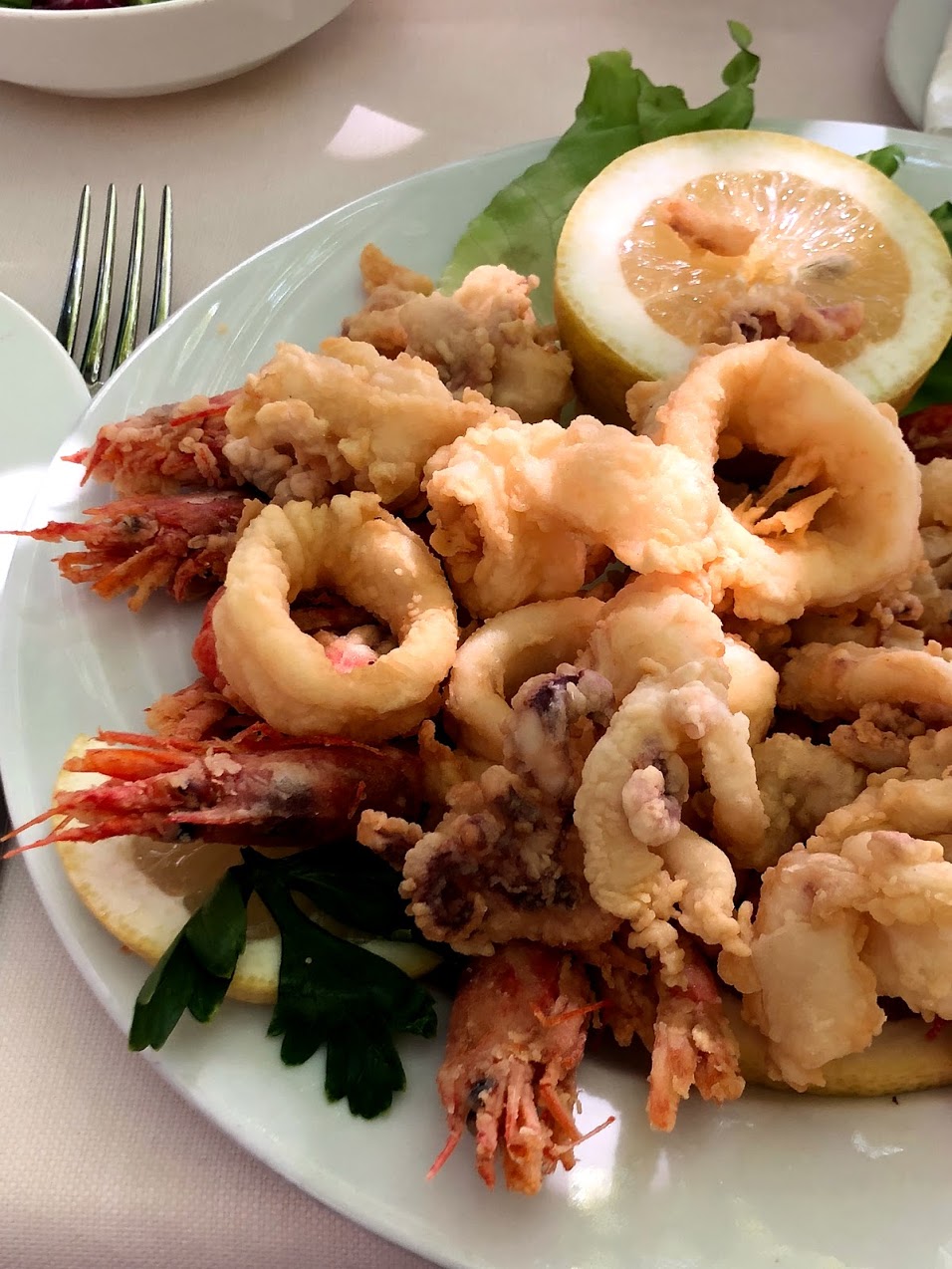 Ristarante La Pergola: Yes, one of the more tourist spots but THE VIEW! not to mention they make a mean plate of fried calamari [rings and tentacles] and local red prawns, all lightly floured and fried, served with fresh lemon, bliss! Finish off with a bowl of lemon granita made from the local lemons, pips and all but such perfection on a 30 degree day.