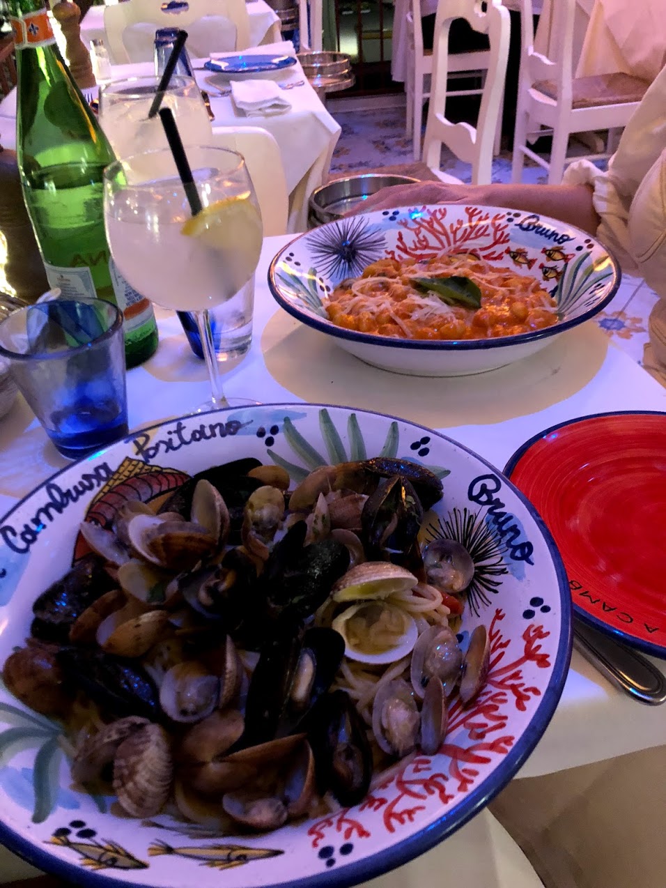 La Cambusa Positano: The biggest delicious bowls of pasta in Positano! Fresh spaghetti loaded up with mussels and vongole so much so that I couldn’t see the paster underneath! The sauce was rich with olive oil, chilli, cherry tomatoes and garlic and I couldn’t get enough of it. Chauntelle had the best gnocchi in a fresh napoli that was super thick and reminded me of when Nonna used to blitz roasted peppers through her sauce. Limoncello spritz accompanied our dinner with views overlooking the main beach of Positano.