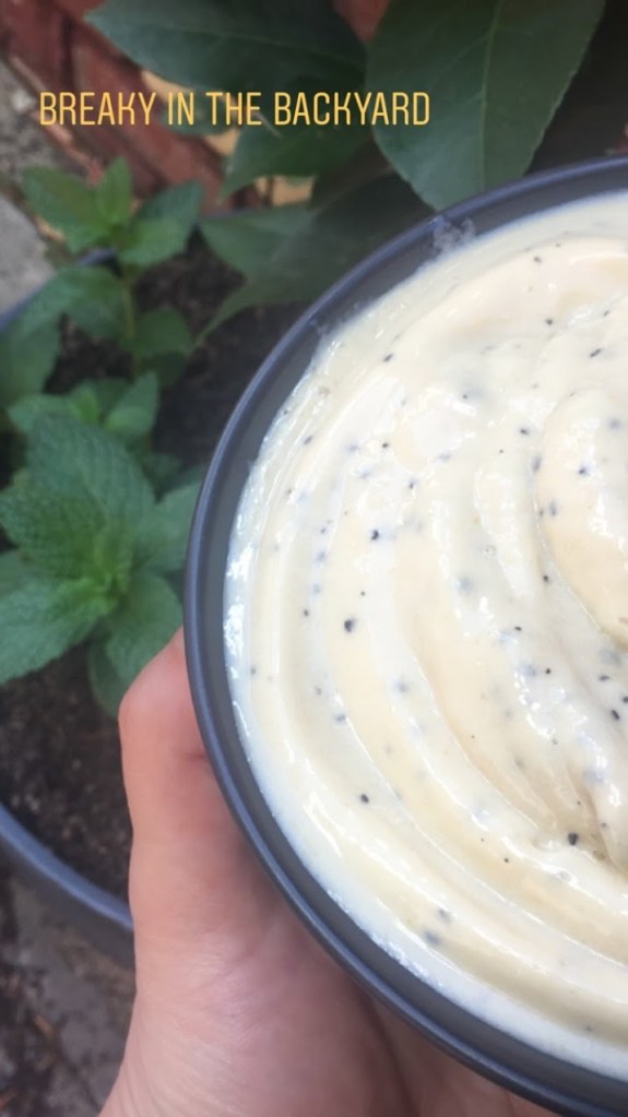 If you are wanting to consume this at a later moment in the day, place mixture into the freezer, tightly covered. Any longer than a day, freeze in ice cube trays so they can be easily blitzed up when you are in need of a sweet treat!