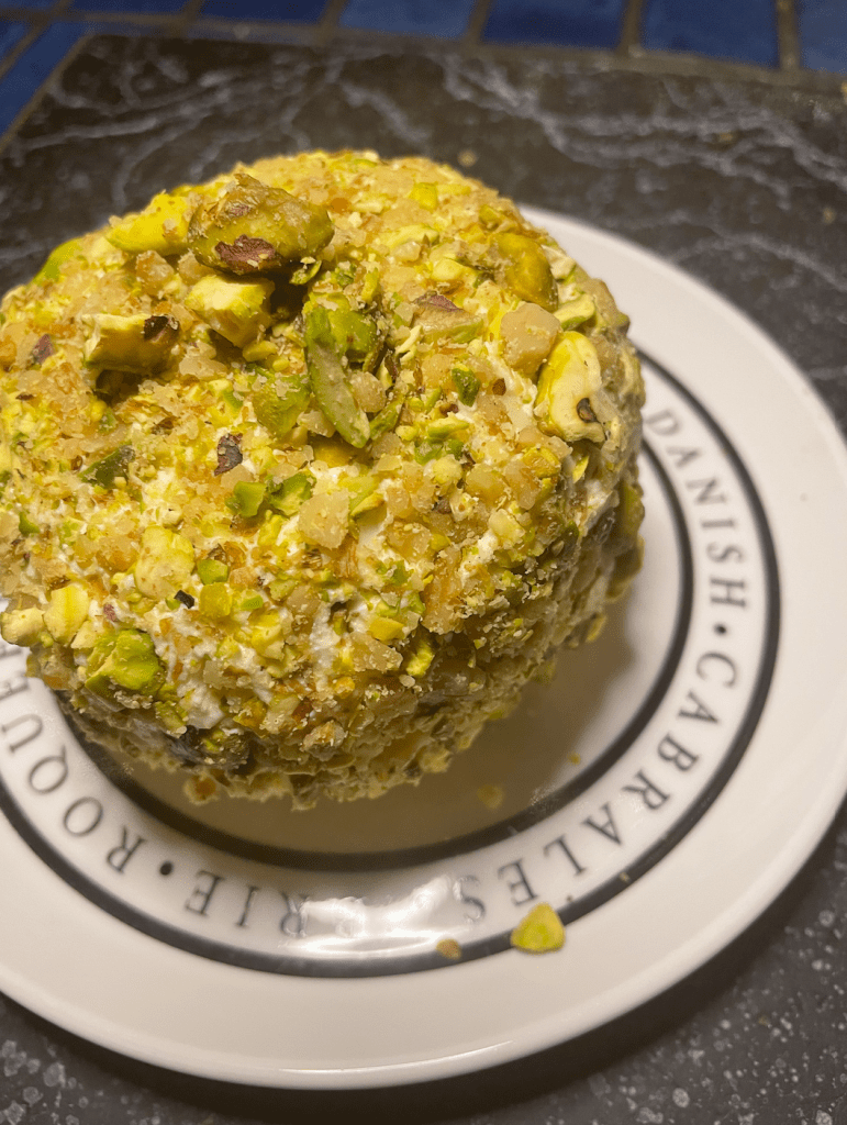 I would love to say this is a 40 foot tall cheese ball as Donkey sings about in the movie Shrek the Halls! But none the less, it’s large enough for a family to share over a festive feast and celebration