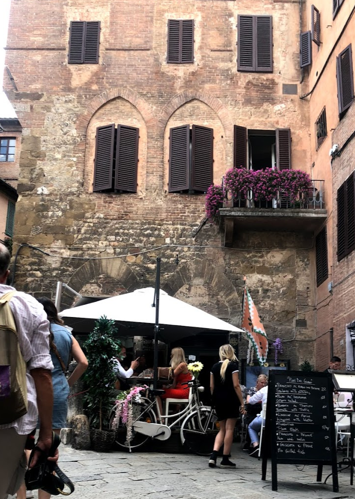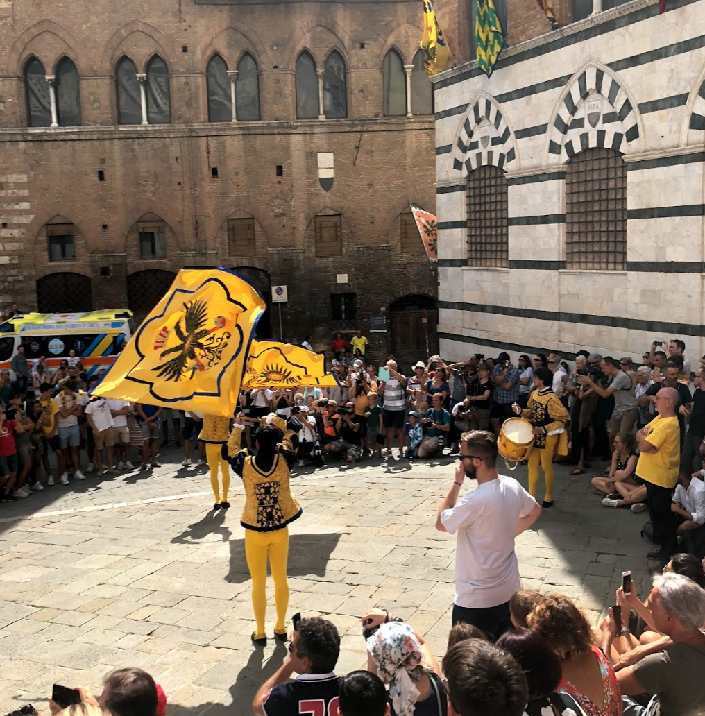 Race day is here!!! Morning nectarine, espresso and a huge bottle of water and away we go. The day consists of musicians from each district parading through the streets following the prized horse that is to represent their contrada.