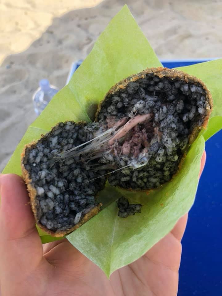 Bags packed for a day at the beach meant stopping past Rusti & Co for some food supplies for the day. This would consist of zucchini and capsicum or red onion pizza slices, traditional arancini filled with bacon, sauce and peas or in honour of my grandmother who loves calamari, I couldn’t not get a squid ink and calamari filled suppli on her birthday to celebrate. It was a little strong seafood tasting but how they got the calamari in the middle to stay so tender is beyond me! This was also our last stop in Tropea while we sat at the local church with the locals before making our way to the train station. Deeelicious!