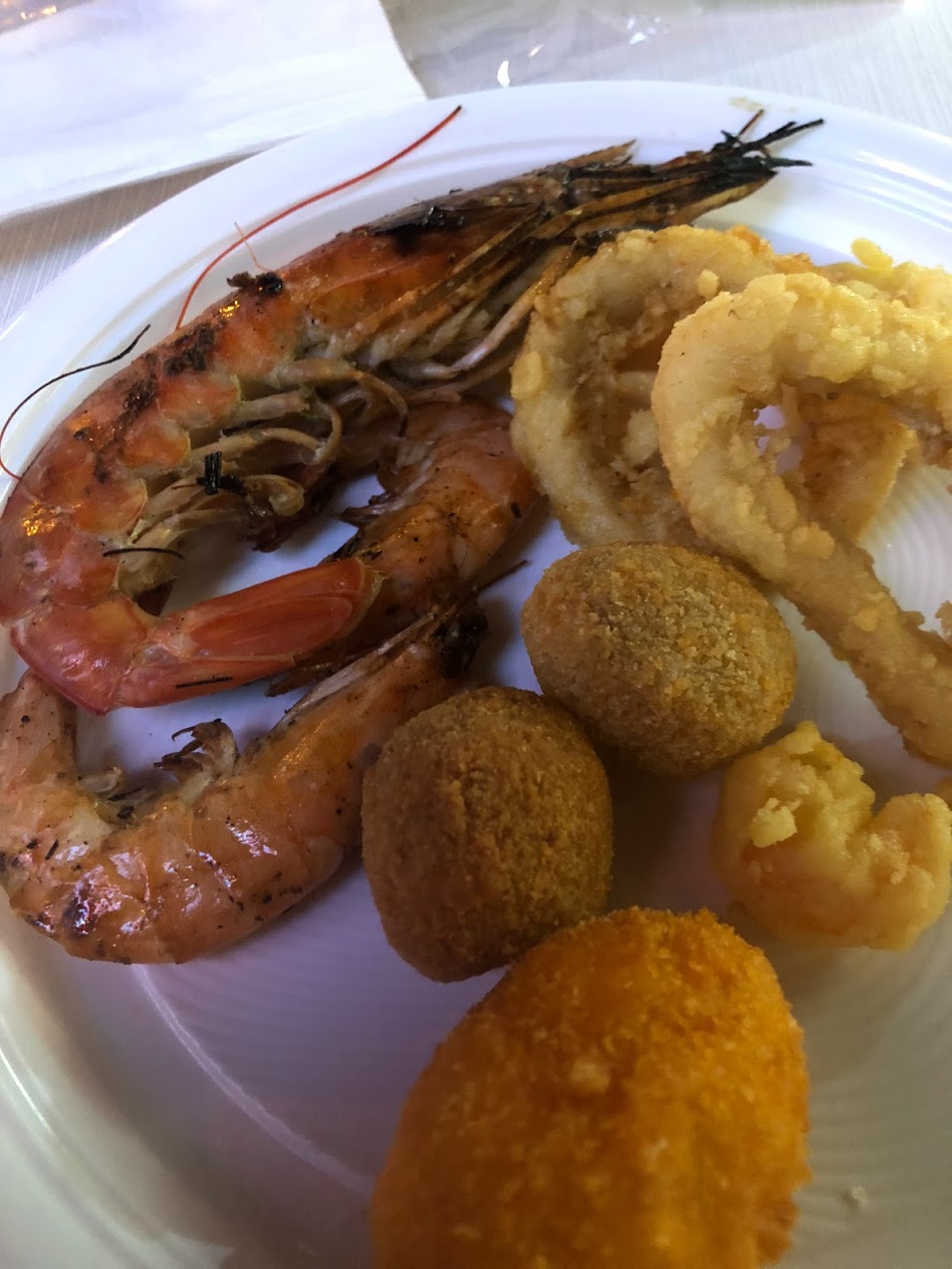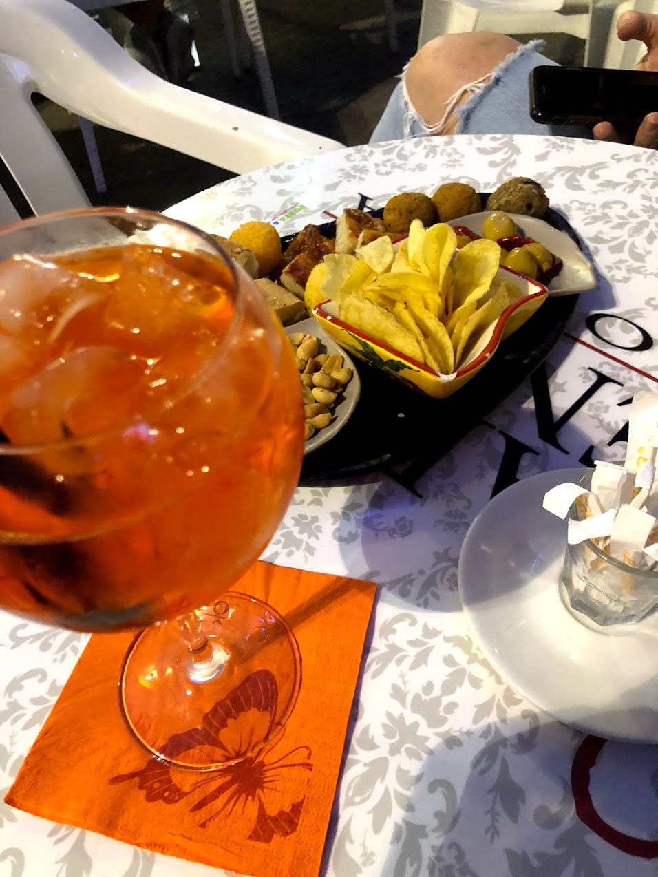 Bar Papillon; the second top place for aprivito. For €5 you have complete access to a buffet of seafood; charred prawns, fried shrimp, crumbed olives, bruschetta, tender fried calamari, prawn cutlets, battered local shrimp all with homemade cocktail sauce. Plenty of fresh lemons everywhere, even in the hand wipes to clean yourself up with after!