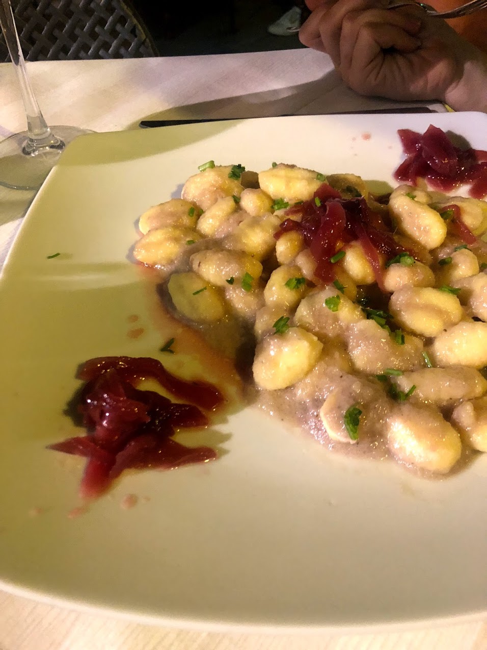 Vecchio Granaio: voted the number 1 pizza in Tropea! It sure did live up to, and exceeded all expectations. Thick, rich sugo I would have been quite satisfied served just a bowl of that, thin base topped with fresh mozzarella and the thinnest perfectly sliced prosciutto. Not to mention the location of this restaurant is stunning, in a little nook between houses covered in vines and the most wonderful staff who even gave us bags of ice for sun burn! Chaun had an iconic dish of gnocchi with a red onion sauce, super thick and sweet with preserved red onions also.