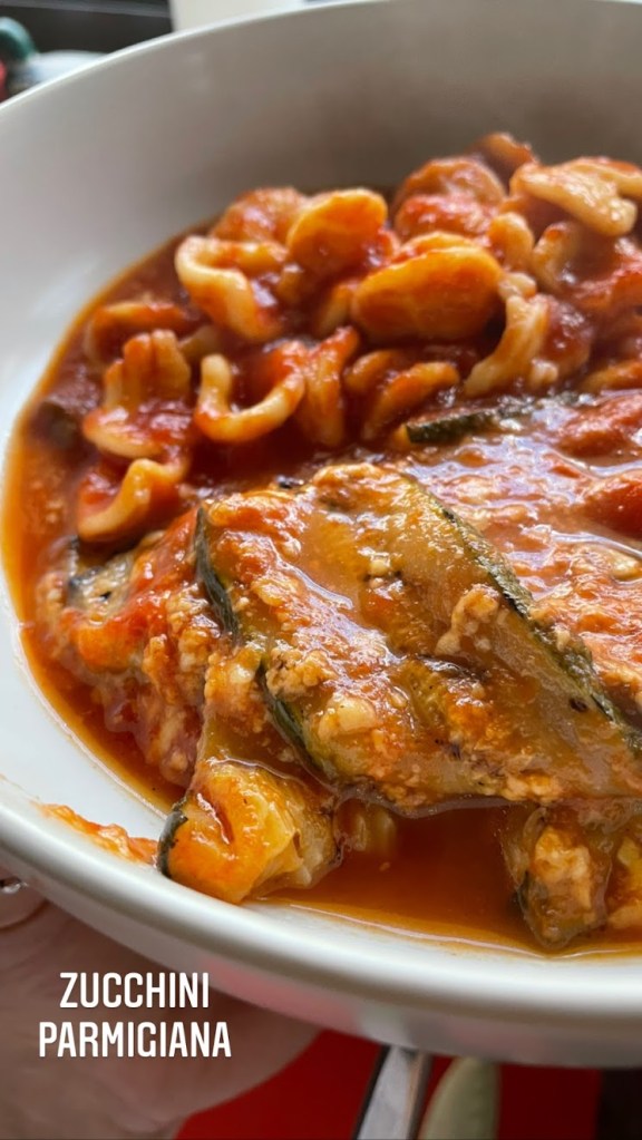 Continue this layering until the tray is full/all of the zucchini has been used and finish the top with only sauce & romano/ parmesan cheese. Cover with baking paper and foil and bake at 180 degrees for at least 45 minutes. Allow to rest out of the oven for 15 minutes and serve with some crusty fresh bread. or my pasta pic, orecchiette!